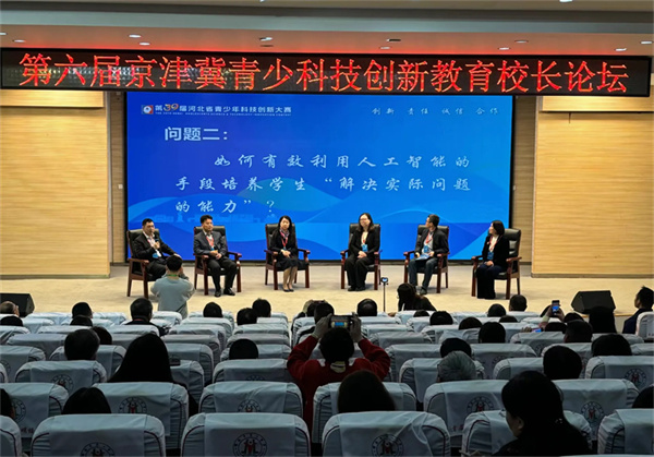 作为河北省青少年科技创新大赛的重要组成部分,第六届京津冀科技创新教育校长论坛以“人工智能时代,中小学科技创新教育的实践与探索”为主题,来自京津冀三地的知名学校校长和科技教育负责人共计130余人参加了论坛。北京师范大学教育学部教授、教育部基础教育教学指导委员会科学教学专委会秘书长王晶莹作了题为《指向高阶思维发展的全球中小学科技创新后备人才培养改革》的主旨报告,从全球科学学习比较的循证研究入手,解读科技创新人才培养前沿问题和政策,对我国科技创新后备人才培养提出建议。来自北京、天津和省内的中小学校长代表参与“校长沙龙”交流经验、进行研讨。科技辅导员论坛则以共同推进科学教育改革为目的,通过优秀科技辅导员宣讲科教方案,展示科教创新理念和先进活动创意设计。
