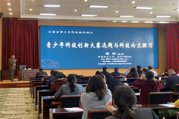 此次培训共有来自大理州12个县(市)科协、教体局相关负责人、中小学及州属学校科技教师代表等100余人参加。培训邀请了云南省教育科学研究院高级教师席学荣、昆明市第一中学高级教师杨蓉、西南林业大学教授周伟和云南省农业科学院研究员杨忠义分别进行了《青少年科技活动的组织与实施》《青少年机器人竞赛与智能设计大赛》《青少年科技创新大赛相选题及论文撰写》《青少年科技创新大赛内容、项目申报及注意事项》专题培训。参训教师认真听讲、踊跃发言、主动交流与探讨,培训取得良好效果。